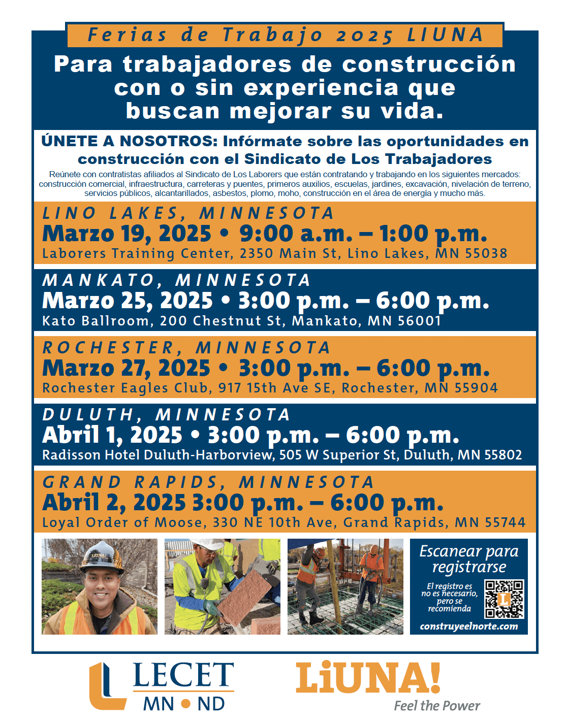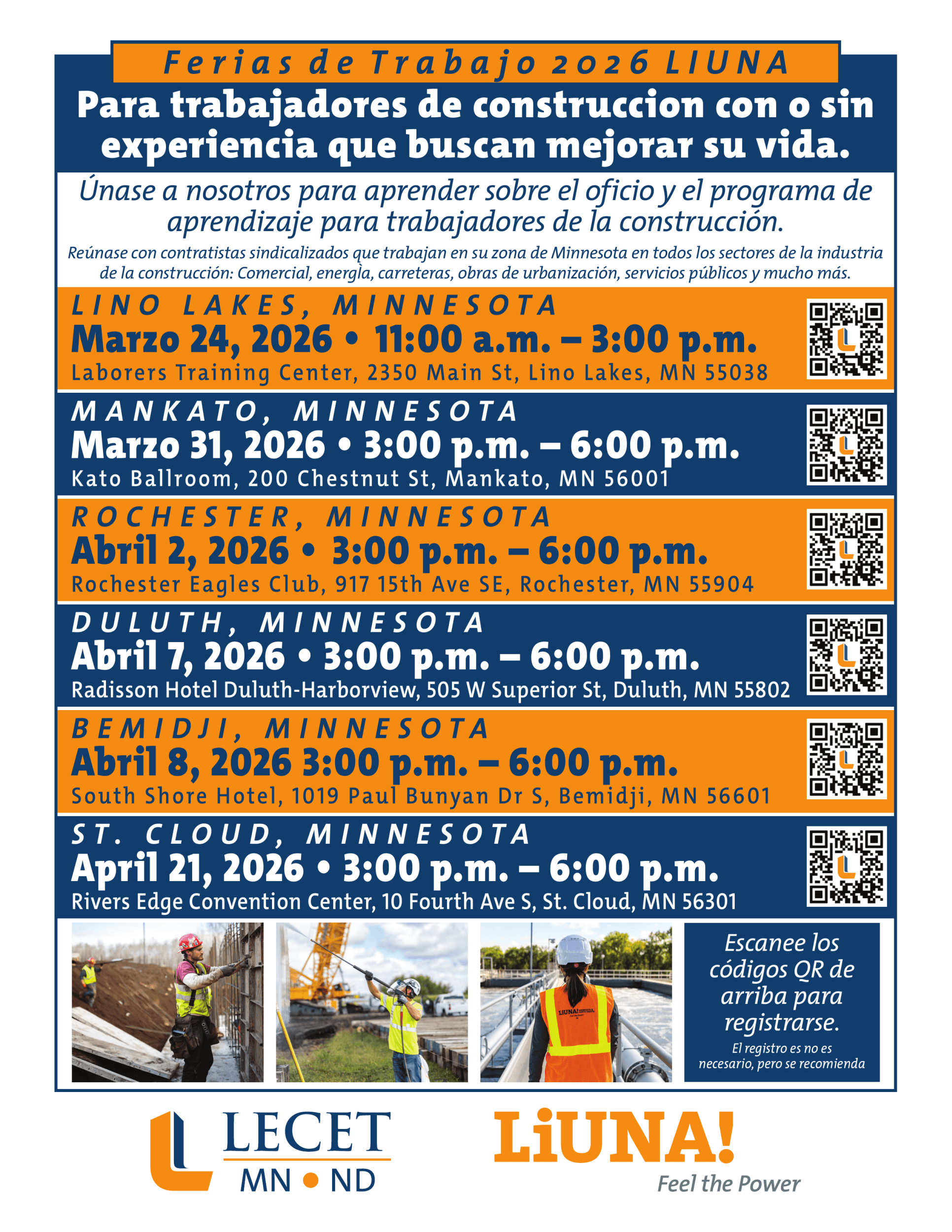 Construya su futuro como trabajador de la construcción calificado con un contratista de LIUNA. Encuentre oportunidades de trabajo en MN y ND a continuación.
